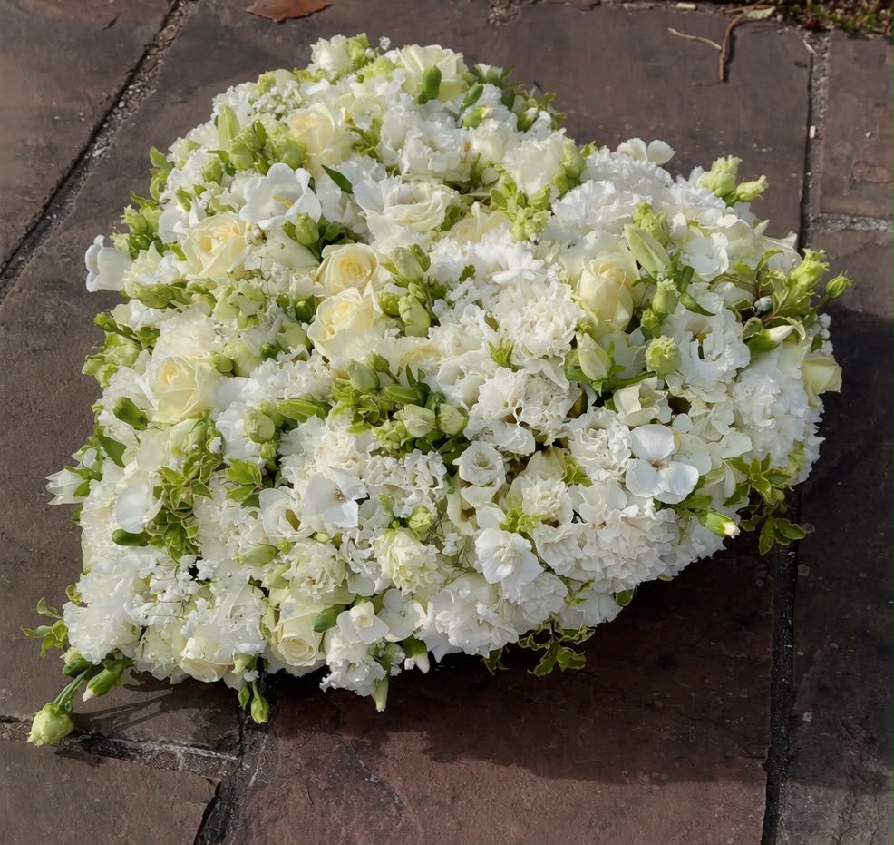 Coeur de fleurs plein, dans les tons blanc et vert Taille environ: diamètre 48cm